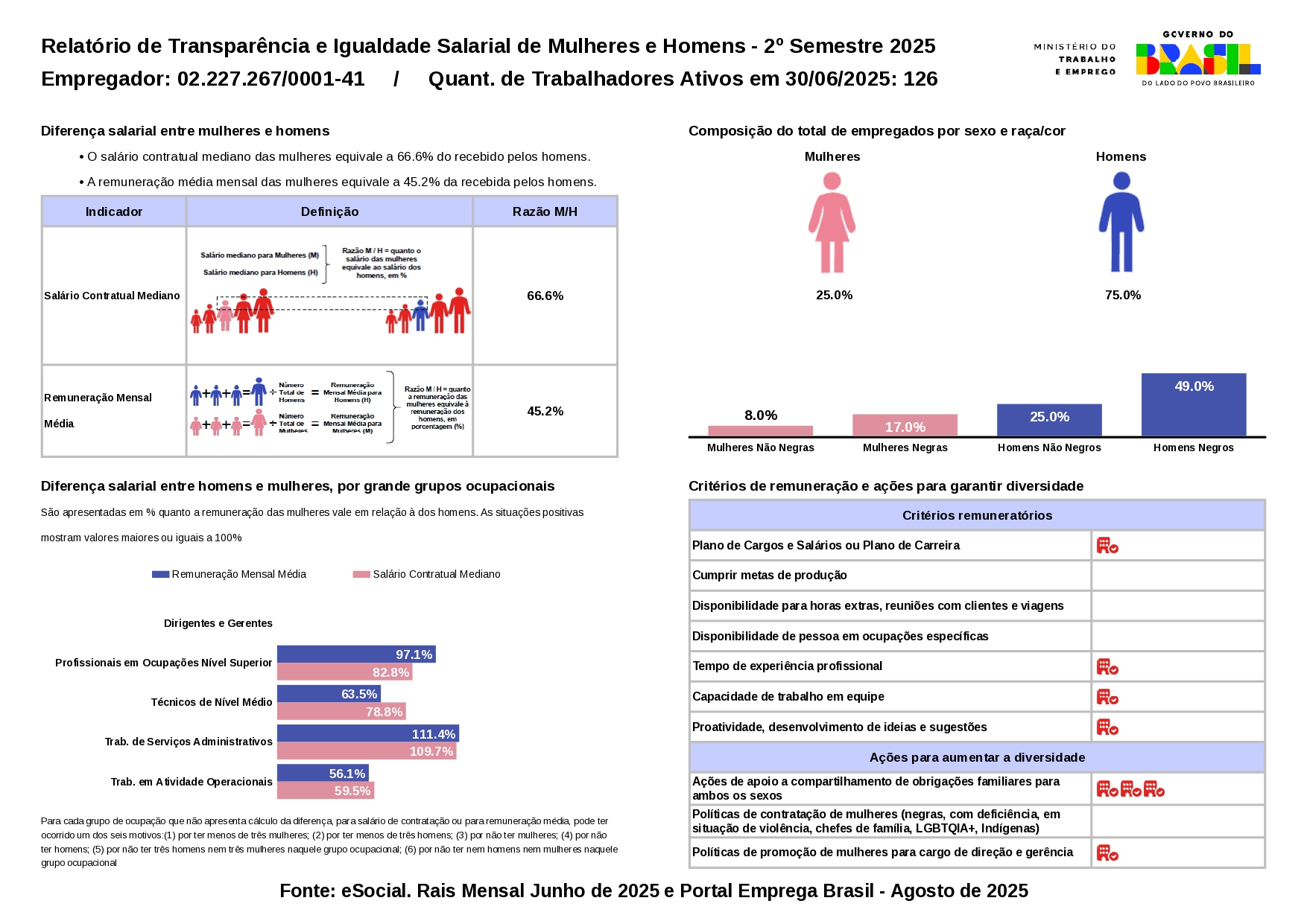 Em cumprimento a Lei nº 14.611/2023 e a Portaria MTE Nº 3.714, divulgamos o relatório de igualdade salarial.